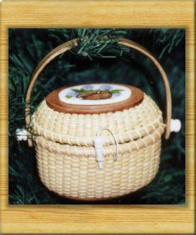 The second of Maggie's Mini Purse Series is the "Classic Oval". This 2" purse is of cherry with cane weavers. The top has an ivory scrimshaw piano key.